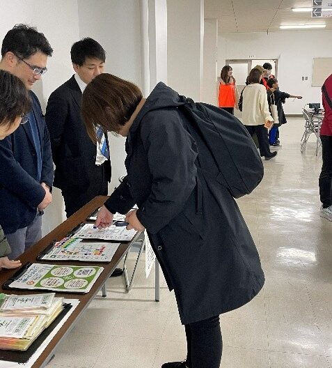 スポーツファーマシー®ブースでは、普及委員長である関水薬剤師、ご協力いただいた福岡県在勤のスポーツファーマシストの久富薬剤師、普及委員の河原が参加し、保護者にアンケートをとりながら、福岡や九州地区のスポーツファーマシー®登録薬局のリストを見せて、スポーツファーマシー®の周知を図りました。